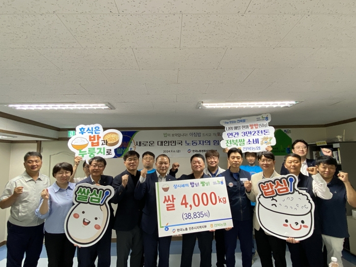 오늘 협약식에서 전북농협은 한국노총전주지부 산하 37개 사업장 8,000여 명 노동자들의 건강과 아침식사를 위해 4,000kg의 쌀을 기탁했다.