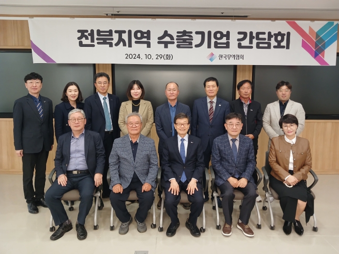 한국무역협회(KITA) 윤진식 회장은 29일 전주를 방문해 전북 무역업계와 소통하고 기업 애로를 청취하는 기회를 가졌다. 이날 간담회에는 (주)세원하드페이싱(소재 코팅 및 표면처리), 디와이이노베이트(주)(특장차), (주)휴먼드림(미용기기) 등 전북지역 수출기업 10개사가 참석했다.