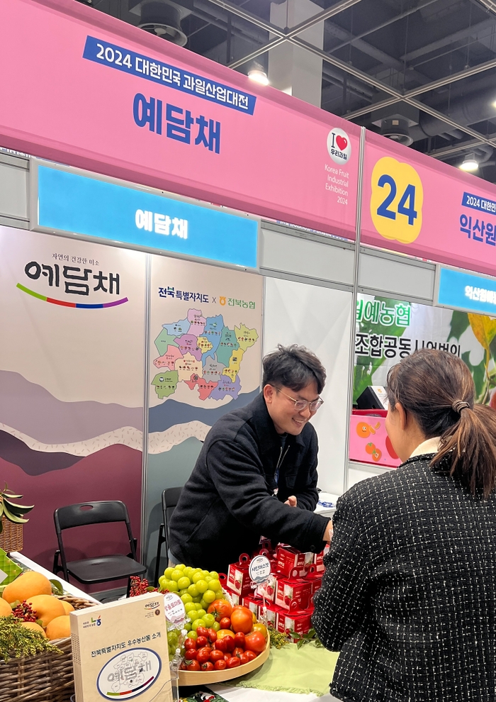 전북농협(본부장 김영일)과 전북도(도지사 김관영)는 양재aT센터에서 21일부터 23일까지 3일간 진행되는 ‘2024년 대한민국 과일산업대전’에 참가해 전북특별자치도 대표 우수과일 ‘예담채’ 홍보관을 운영한다고 밝혔다.Copyrights ⓒ 전북타임즈 & jeonbuktimes.bstorm.co.kr, 무단 전재 및 재배포 금지