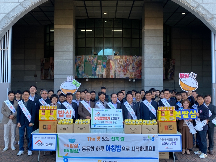 한국노총 전주시지역지부(의장 박병철)는 25일 화산체육관에서 전주시설관리공단의 노동자들과 전북농협 임직원들이 함께 하는 ‘아침밥 먹기 운동’ 캠페인을 전개하였다.