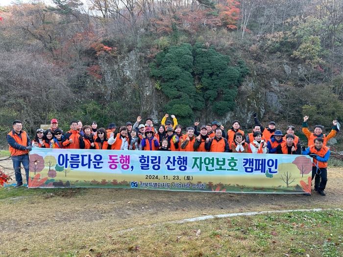 전북특별자치도 기업사랑 도민회(회장 윤방섭)기 지난 11월 23일 우리 고장의 명산 선운산에서 힐링 산행 한마당 자연보호 캠페인을 실시했다.