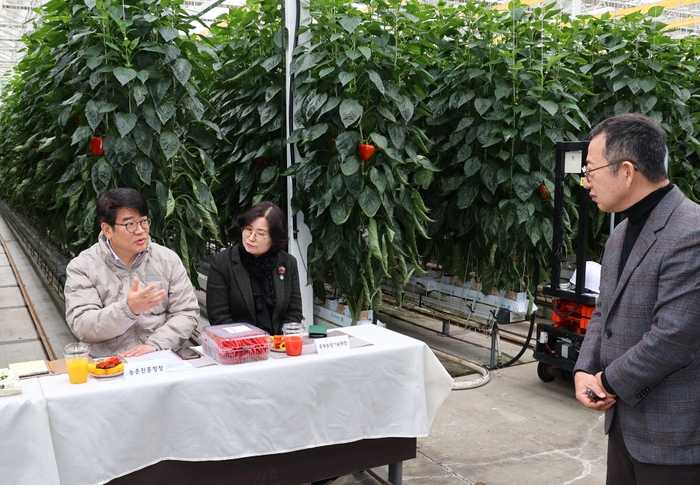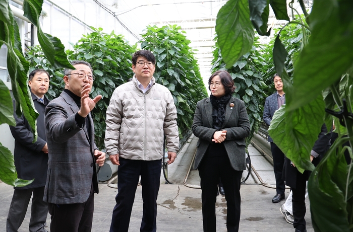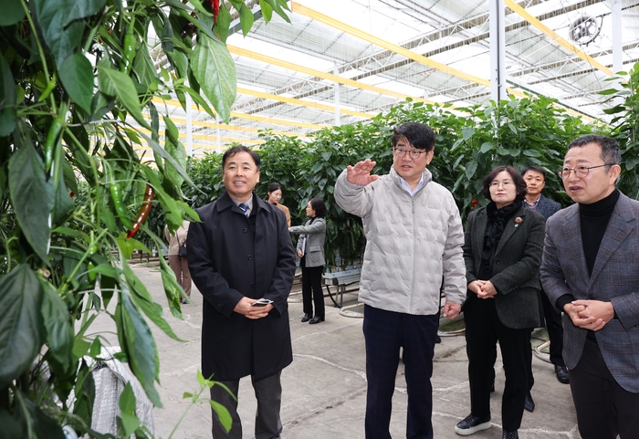 권재한 농촌진흥청장은 11월 28일 충북 진천에 있는 스마트팜 시설을 방문해 고추 수경재배 현황을 살펴봤다. 이 자리에서 환경조절기술을 활용한 노동강도 완화, 병충해 극복, 생산성 향상 효과를 점검했다.