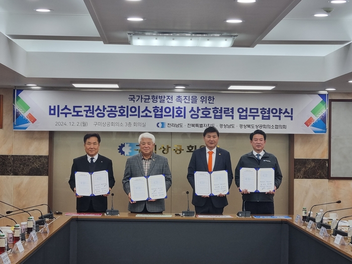 전북상공회의소협의회(회장 김정태)는 지난 2일 구미상공회의소에서 국가균형발전 촉진을 위한 ‘비수도권상공회의소협의회 상호협력 업무협약’을 체결했다고 밝혔다.