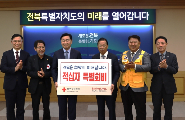 대한적십자사 전북특별자치도지사(회장 이선홍)는 3일 대한적십자사 전북특별자치도지사의 명예회장인 김관영 도지사가 도청에서 2025년도 적십자 특별회비를 전달하며, 2025년 적십자회비 모금 시작을 선포했다고 밝혔다.