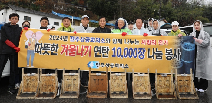 이날 봉사활동에는 김정태 회장을 비롯한 전주상공회의소 의원단 및 임직원 20여 명과 전주연탄은행 관계자 등 총 30여 명이 참여해 지역사회에 따뜻한 사랑을 나누는 뜻깊은 시간을 함께 했다.