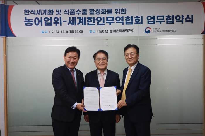 장태평 농어업위 위원장은 “세계한인무역협회가 보유한 세계 각지의 한인 네트워크는 최고의 K-푸드 홍보 채널이자 국가적 자산이다”라며 “앞으로 대한민국 식품의 세계화와 수출 확대를 위해 세계한인무역협회와 지속적으로 협력해 나가겠다”고 밝혔다. /최준호 기자