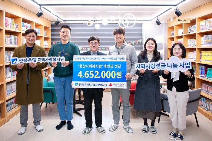 JB금융그룹 전북은행지역사랑봉사단(공동단장 백종일 은행장, 정원호 노조위원장)은 익산시 동산동 소재 동산사회복지관(관장 손창영)에 지역사랑성금 500여만원을 전달했다고 12일 밝혔다.