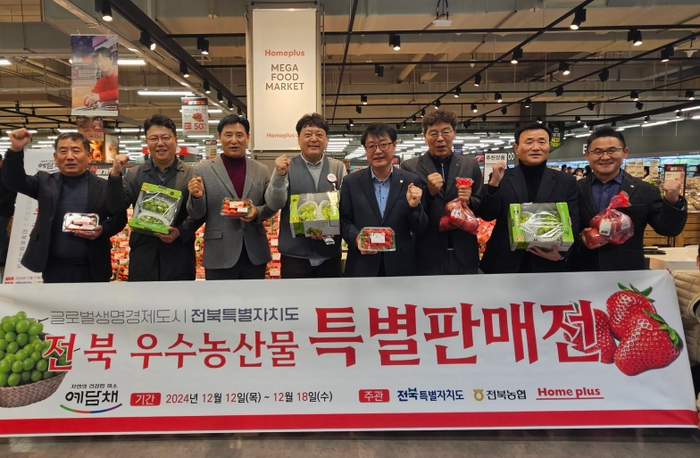 전북농협(본부장 김영일)과 전북특별자치도(도지사 김관영)는 전북에서 생산되는 우수농산물의 판매 확대와 경기침체에 따른 소비 부진으로 어려움을 겪고 있는 농가의 어려움을 덜기 위해 지난 12일부터 18일까지 7일간 전국 홈플러스(116개)매장에서 전북농산물대전을 실시한다고 밝혔다.