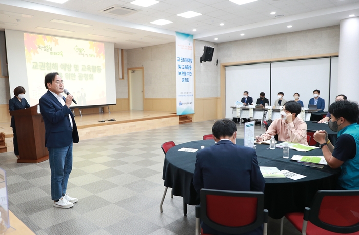 전라북도교육청(교육감 서거석)은 ‘교권침해 예방 및 교육활동 보호를 위한 공청회’를 5일 오후 2시 전주비전대학교 비전컨벤션홀에서 개최했다.