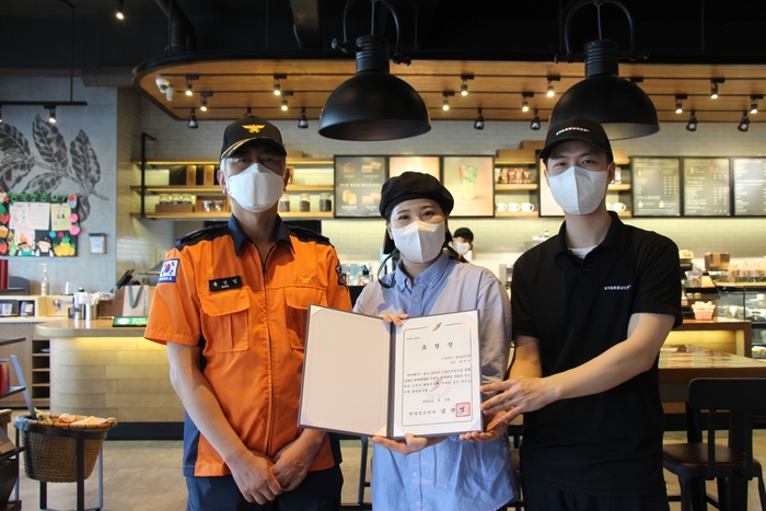 스타벅스 정읍DT점에는 소방안전관리 우수업소 인증 현판 부착과 함께 전라북도지사 표창이 수여됐다.