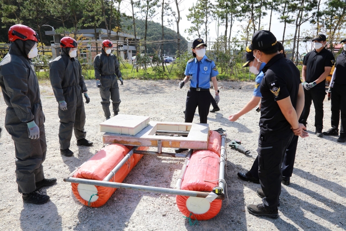 고유미 부안해경서장의 지휘로 진행된 이번 훈련은 직접 구조장비를 꼼꼼히 살피고 점검하며, 인명구조에 시간이 지연되지 않도록 반복훈련을 통한 구조대원의 인명구조 역량 향상을 강조로 시작했다.
