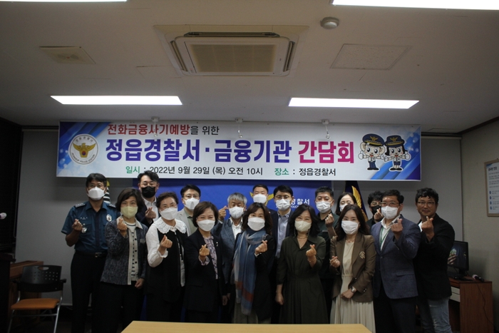 정읍경찰서는 지난 29일 10시 2층 어울마당에서 관내 금융기관 관계자 15명 참석한 가운데 전화금융사기 피해예방을 위한 경찰·금융기관간 협업을 주제로 간담회를 개최했다.
