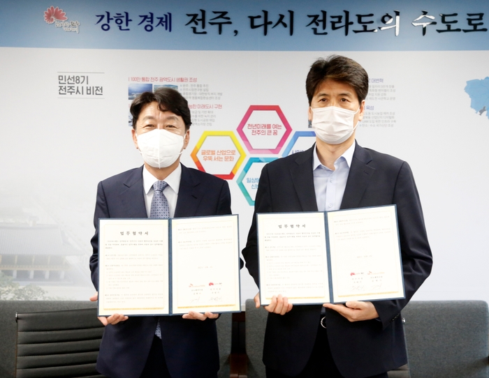 전주시와 SK브로드밴드 전주방송이 지역경제 활성화와 소상공인 지원을 위해 힘을 모으기로 했다.