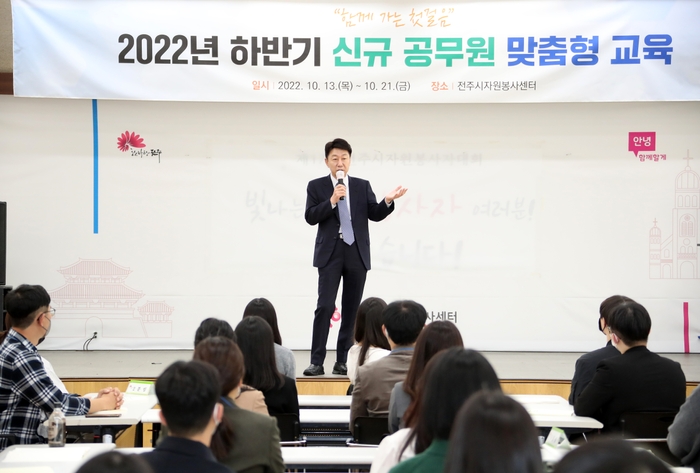 전주시는 13일부터 오는 21일까지 7일간 전주시자원봉사센터에서 올해 하반기 신규 임용자 중 인사발령 예정자 81명을 대상으로 공직생활 적응을 돕기 위한 맞춤형 교육을 실시한다.