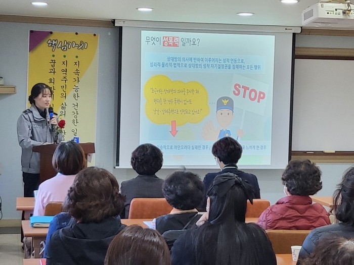 이번 교육은 노인 대상 직접 돌봄서비스를 지원하면서 성희롱·성폭력에 노출되기 쉬운 생활지원사를 대상으로 성폭력 개념 및 예방 방법, 범죄피해 시 신고·대처 방법을 중심으로 이뤄졌다.