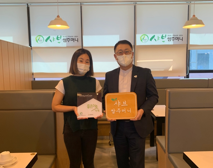 샤브쌈주머니 에코시티점은 좋은이웃가게 캠페인에 참여하여 수익금 일부를 국내아동권리보호사업을 위해 후원하게 됐다.