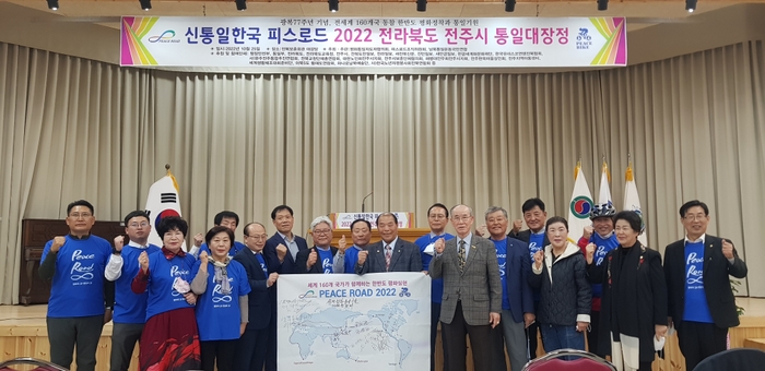 한반도 평화정착과 통일을 기원하는 ‘전세계 160개국 동참 인류평화 프로젝트- 신통일한국 피스로드 2022 전주시 통일대장정’ 행사가 25일 오후 전주시 덕진구 권삼득로 관내소재 전북보훈회관과 덕진공원 일원에서 ’전주시 각계지도자 1백여명이 참석한 가운데 성황리에 개최되었다.