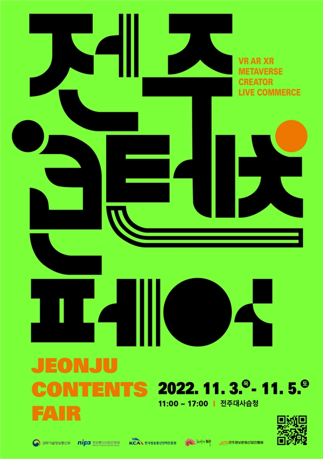 전주시와 전주정보문화산업진흥원(원장 이영로)는 오는 11월 3일부터 5일까지 한옥마을 내 전주대사습청에서 ‘콘텐츠로 갓생살기’라는 주제로 ‘2022 전주 콘텐츠 페어’를 개최한다.