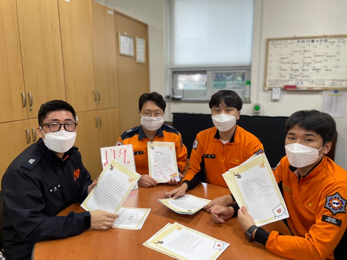 이날 학생들이 전한 편지에는 “항상 저희를 위해 희생하는 모습 감사합니다”, “위험한 불길에도 시민을 살리려고 용감하게 뛰어드는 소방관분들 너무 감사합니다”, “항상 소방관님들을 기억하고 응원할게요”라며 정성이 가득 담긴 손글씨로 응원의 메시지가 담겨 있었다