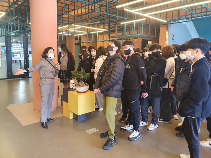 이날 회현중 학생과 교사는 야호학교의 공간 콘셉트와 공간 구성에 청소년의 의견을 반영하기 위해 조직한 청소년시민자문단의 활약에 대해 설명을 청취하고, 야호학교 각 층별 특성과 활동실의 특색에 대해 설명을 들었다.