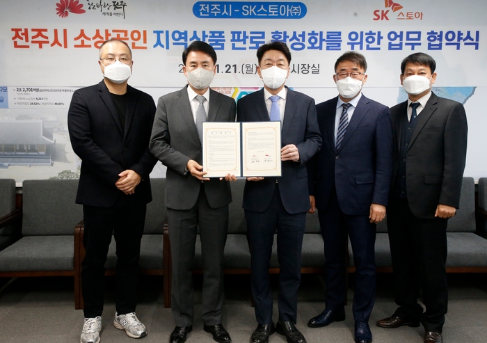 이날 협약에 따라 시와 SK스토아는 가지고 있는 자원을 기반으로 전주지역 기업이 생산하는 상품의 경쟁력을 높이고, 지역 상품의 홍보와 유통채널 연계 협력에 힘쓰기로 했다.