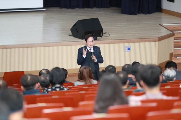 서 교육감과의 운영위원장들과의 질의 응답 후에는 김성천 한국교원대학교 교수가 미래사회 교실의 모습과 4차 산업사회 교육방법 등을 제시하는 미래교육 특강을 했다.