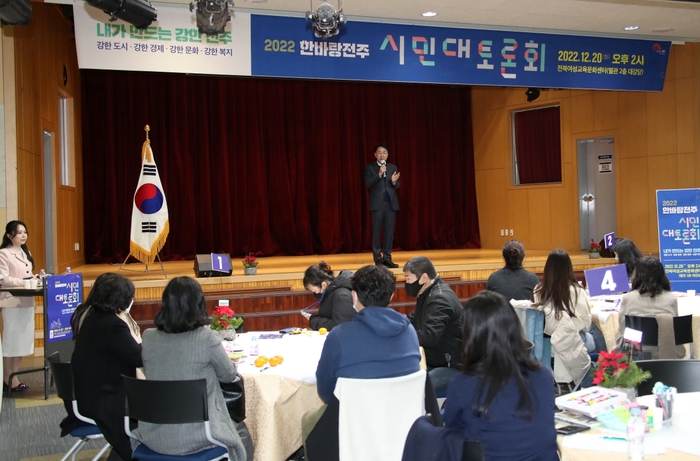 시는 20일 전북여성교육문화센터 대강당에서 시민 100여 명이 참석한 가운데 ‘2022 한바탕전주 시민대토론회’를 개최했다.