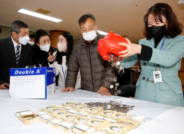 주민센터 직원들이 중년 남자와 통화 내용을 따라 현장으로 나가 확인해보니 A4용지 박스가 놓여 있었고, 상자에는 5만 원권 지폐 다발과 동전이 들어있는 돼지저금통 1개가 들어 있었다. 금액은 모두 7600만 5580원으로 집계됐다.