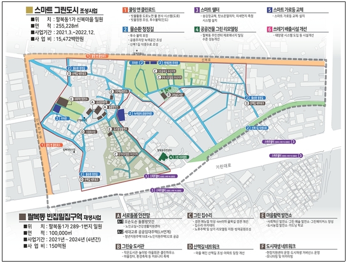 주요 사업 내용은 ▲쿨링 앤 클린로드 ▲물순환 청정길 ▲스마트 쉘터 ▲팔복동 주민센터 그린리모델링 등이다.
