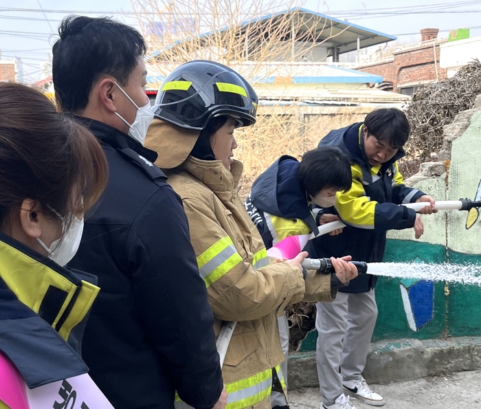 이와 더불어 시장 상인과 관계인의 자체적인 대응 역량 강화를 위해 모래내시장 전문의용소방대를 포함한 의용소방대연합회와 자체 소방대 인원들을 대상으로 ▲시장 내 비상소화장치 조작?방수 훈련 및 화재진압훈련 ▲시장 내 숙식 거주자 대피 훈련시 ▲비상소화장치 관리요령 안내를 실시하였다.