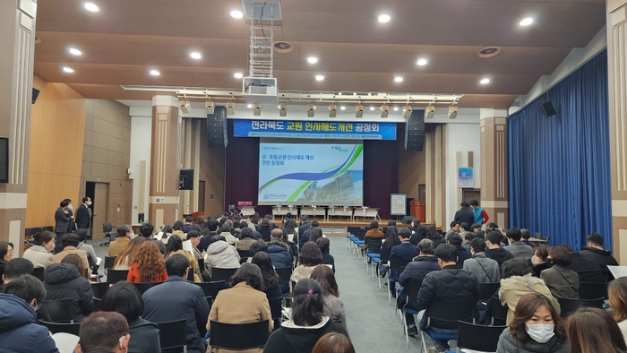 전라북도교육청(교육감 서거석)은 15일 교원 인사제도 개선을 위한 공청회를 열고 현장의 의견을 교원과 관계자 300여 명이 참석한 가운데 진행됐다.