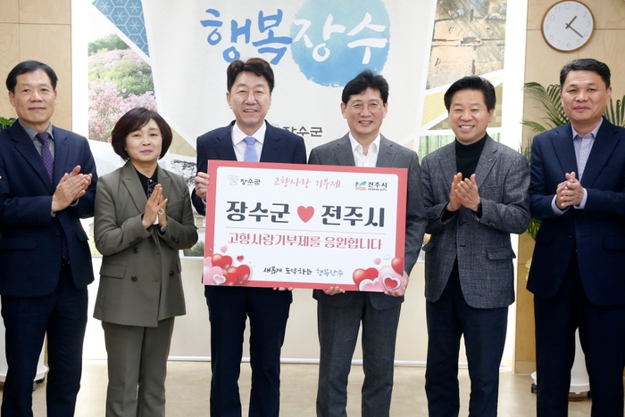 후백제 역사문화를 공유하는 전주시와 장수군이 공동사업의 발굴·협력 의지를 다지고 건전한 기부문화의 확산을 위해 고향사랑기부에 상호 동참했다.