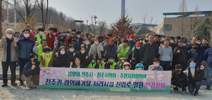 전주시는 지난 9일 봄철을 맞아 전주권 광역폐기물 처리시설 진입로 일원에서 민·관 합동 환경정비를 실시했다.