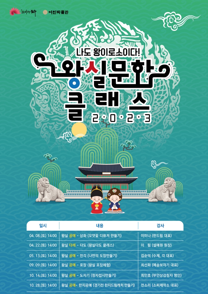 전주시 어진박물관은 오는 4월~5월, 9월~10월 두 차례에 걸쳐 ‘왕실문화 클래스’ 프로그램을 운영한다고 22일 밝혔다.