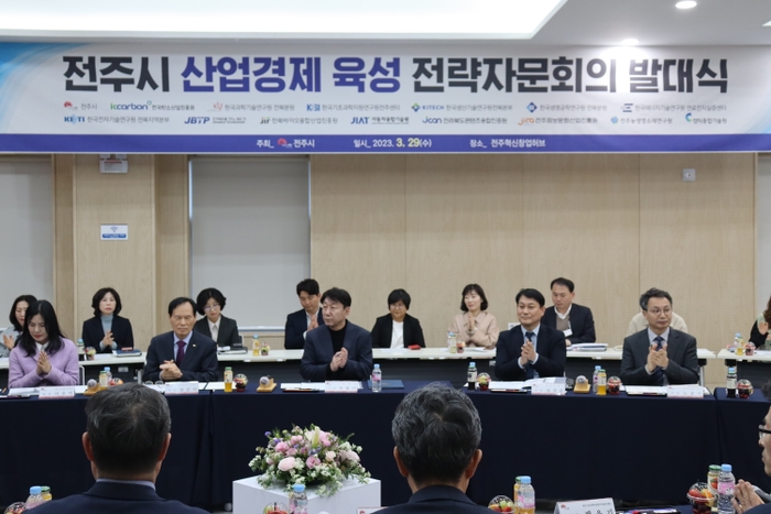 전주시는 29일 전주혁신창업허브 1층 대회의실에서 우범기 전주시장과 한국탄소산업진흥원과 자동차융합원, 전북테크노파크 등 전북지역 산업경제 관련 14개 연구기관장 등이 참석한 가운데 ‘산업경제 육성 협업체계 구축을 위한 전략자문회의’의 발대식을 가졌다.