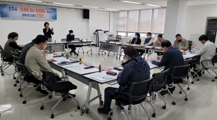 이성순 전주시 청소지원과장은 “어려운 여건에도 1회용품 없는 장례문화 확산을 위해 의견을 모아주신 장례식장 대표분들과 전주지역자활센터장께 감사드린다”면서 “다양한 의견을 바탕으로 실효성 있는 시책을 발굴·추진할 수 있도록 노력하겠다”고 말했다.