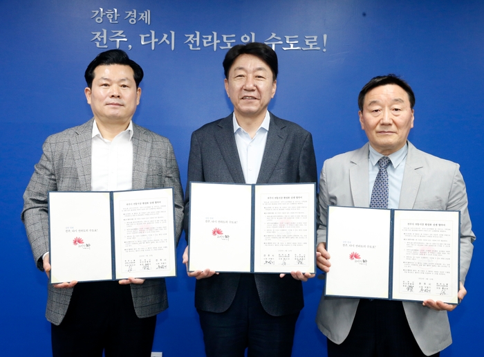 전주시는 24일 전주시장실에서 우범기 전주시장과 박덕규 한국노총 전주시지역지부 의장, 이만규 한국노총 팔복공단협의회 의장, 박종서 전주시 상인연합회 회장 등이 참석한 가운데 ‘전주시 전통시장 활성화 상생협약’을 체결했다.