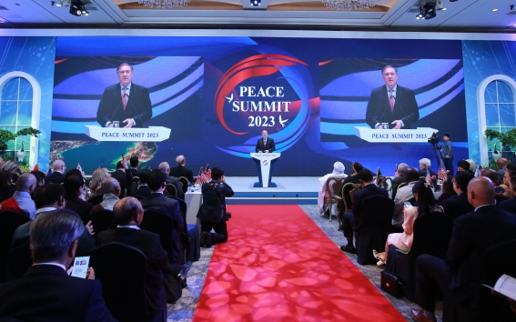 이날 개회식에서 마이크 폼페이오 전 미국 국무장관은 “이번 평화서밋은 항구적 평화실현을 위한 활동이 중심에 있다”면서 “얼마전 키이우에서 젤렌스키 대통령과 다양한 논의를 했고 함께 기도를 했는데, 젤렌스키 대통령은 유대인이고 저는 기독교인으로 종교가 달라도 우리는 함께 평화를 위해 기도했고 하나님을 통해 진정한 평화를 이루기 위해 마음을 모았으며, 모든 시민들이 기도하고 있다는 것을 확신한다”고 했다.
