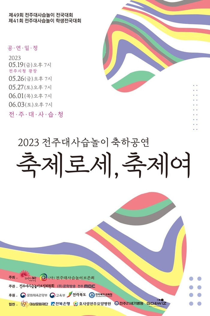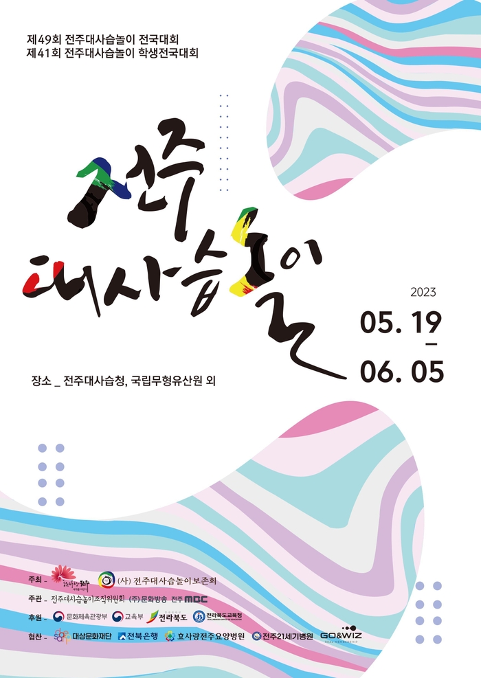전주시와 (사)전주대사습놀이 보존회가 주최하고, 전주대사습놀이조직위원회와 ㈜문화방송, 전주 MBC가 주관하는 ‘제49회 전주대사습놀이 전국대회’와 ‘제41회 학생전국대회’가 오는 19일부터 6월 5일까지 18일 동안 국립무형유산원과 전주대사습청 등 전주 일원에서 개최된다.