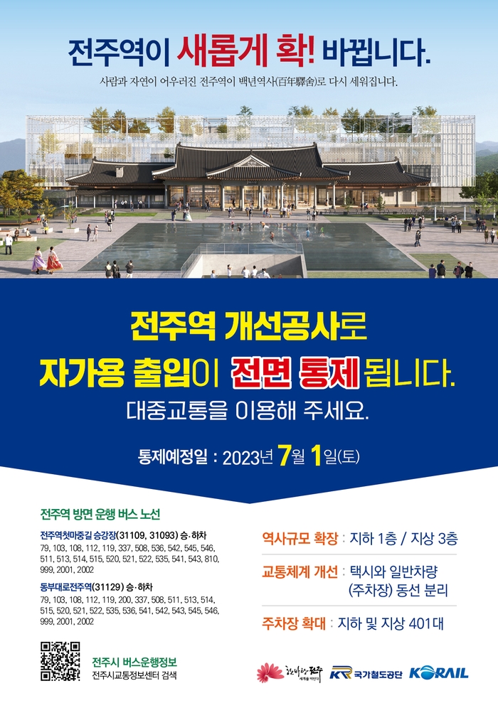 기존 전주역을 종점으로 운행되던 79, 101번 시내버스는 7월 1일부터 동물원으로 종점이 변경돼 운행되며 전주역 내부로는 시내버스가 정차하지 않는다.