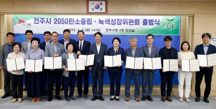 시는 9일 시청 4층 회의실에서 사회 전 영역의 참여를 통한 탄소중립 실현 및 탄소중립 정책을 효과적으로 추진하기 위해 구성된 ‘전주시 2050탄소중립·녹색성장위원회’(이하 탄소중립위원회)의 출범식을 가졌다.