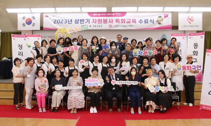 사단법인 전주시자원봉사센터(이사장 최이천)는 14일 센터 이웃사촌방에서 ‘2023년 상반기 자원봉사 특화교육 수료식’을 개최했다.