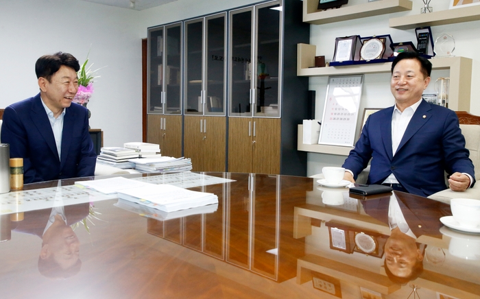 우범기 전주시장이 전주를 찾은 김두관 국회의원(더불어민주당, 경남 양산시을, 국토교통위원회)에게 강한 경제 구현과 광역도시 성장의 열쇠가 될 광역교통망 확충을 위한 지원을 요청했다.