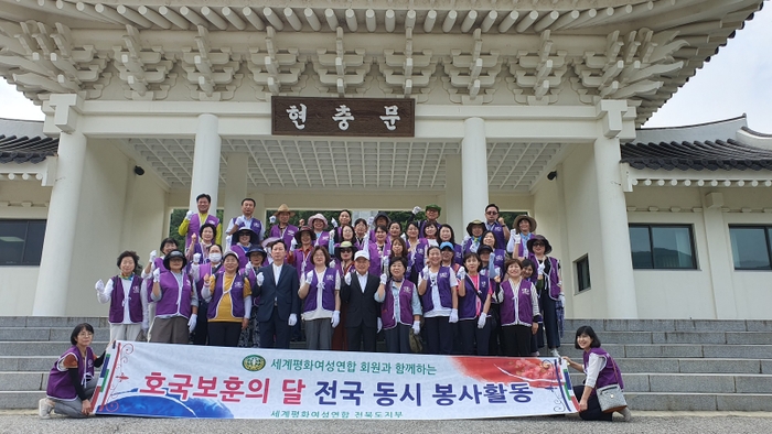 세계평화여성연합 전북도지부(공동회장 지모또 유끼꼬, 박서현, 이하 여성연합)는 3일 오전 한국전쟁 73주년을 맞이하여 국립임실호국원에서 회원 50여명이 참여한 가운데 참배 및 태극기뽑기, 쓰레기줍기 등 봉사활동을 실시했다.