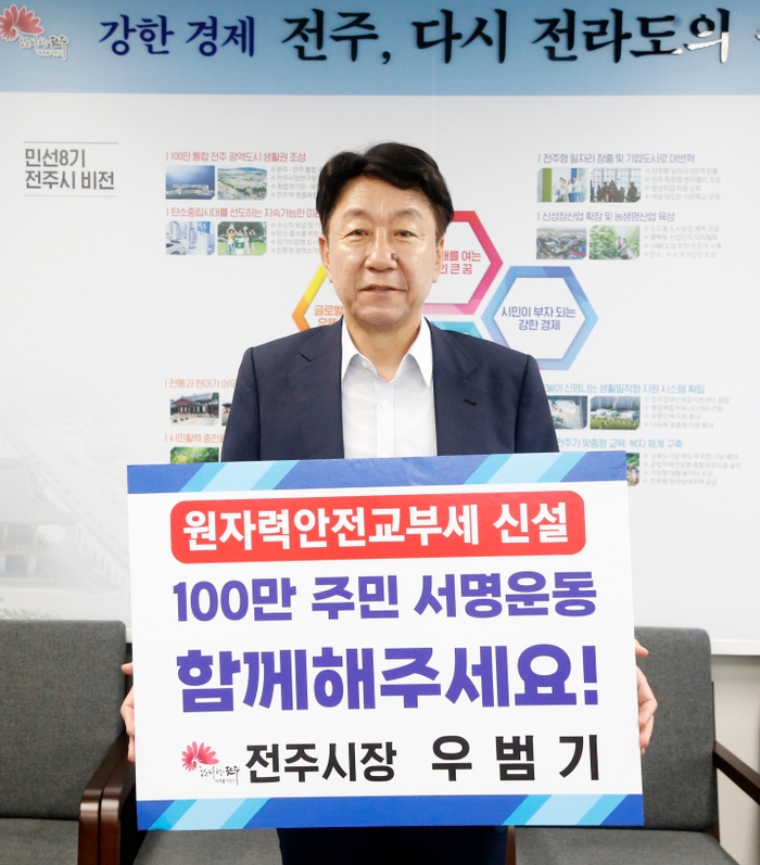 우범기 전주시장이 원자력 안전교부세 신설을 촉구하는 100만 서명운동에 동참했다.