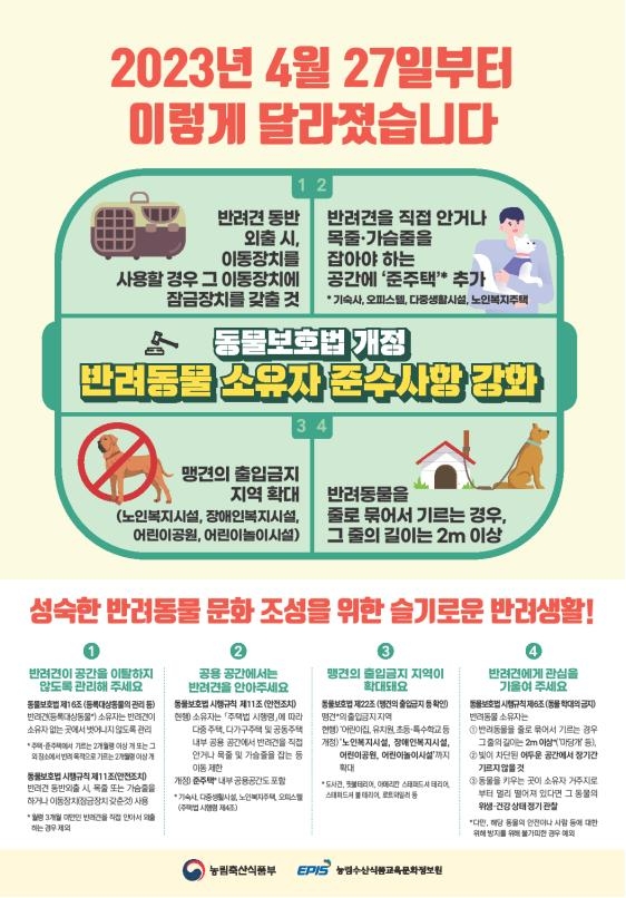 이와 관련 개정된 동물보호법은 반려동물 소유자의 준수사항을 강화한 것이 특징이다.