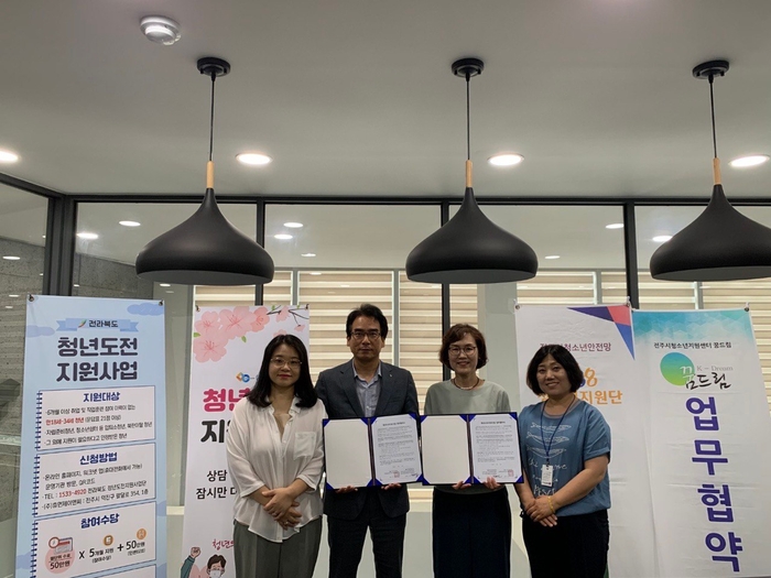 이날 협약에 따라 양 기관은 긴밀한 협력체계를 구축하고 취업에 어려움을 겪는 전주지역 위기청소년들이 자립할 수 있도록 청년도전 지원프로그램 등 맞춤형 취업역량 강화프로그램을 지원하기로 했다.