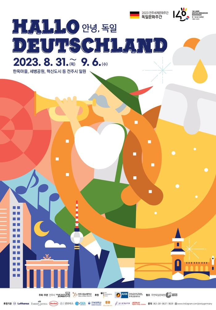 전주시는 오는 31일부터 9월 6일까지 1주일 동안 에코시티 세병공원과 전주혁신도시 등 전주시 일원에서 ‘2023 전주세계문화주간- 할로, 도이칠란드(안녕,독일)’ 행사를 개최한다고 21일 밝혔다.