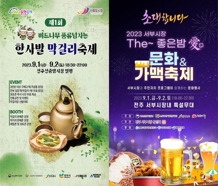 전주시는 선선한 저녁 바람과 함께 무더위에 지친 시민들의 마음을 달래줄 전통시장 축제가 오는 9월 1일과 2일 이틀간 신중앙시장과 서부시장에서 각각 펼쳐진다고 29일 밝혔다.