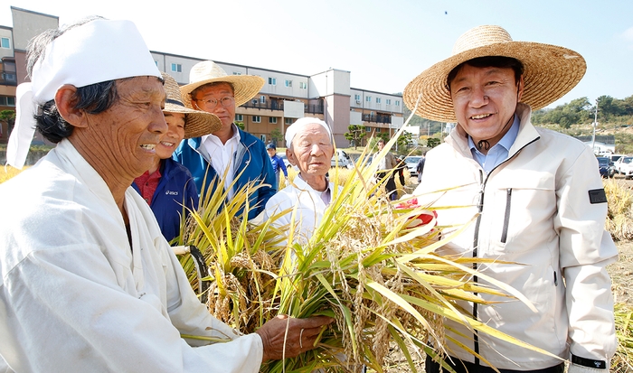 행사는 기접놀이 풍장패, 두레패의 여는 굿과 기고사를 시작으로 우범기 시장의 덕담, 전통 벼 베기 및 탈곡 체험, 새참 나누기 등의 순으로 진행됐다.